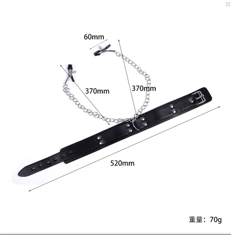 Collar de Cuero con pinzas ajustables para pezón con cadena